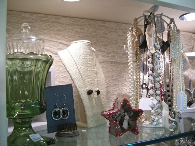 And how do you like my new "necks" for displaying necklaces? So much nicer than the big tangle of necklaces hanging next to it, right? I may get more of these.And there's Jordy, peeking through the beads.